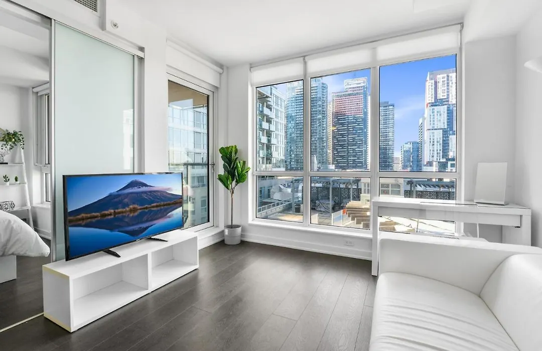 Equipped with air conditioner, Heart Of Downtown Toronto! Apartment exhibits a balcony featuring a work desk. Additionally, guests can enjoy a flat-screen TV with satellite channels, and safety amenities like smoke detectors. This accommodation offers 1 bedrooms. The apartment includes 1 bathrooms. Hair dryers and bath sheets can also be found.